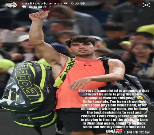 再來,我們將視線轉到上海大師賽,就在今天,上海大師賽迎來一個讓人遺憾的消息:阿爾卡拉斯宣布退出上海大師賽。