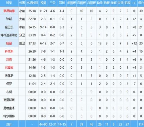 單核帶隊的里夫斯,投籃22中12,其中三分10中6,罰球22中21狂轟51分11板9助炸裂數據,正負值+22,湖人127-120擊敗國王。