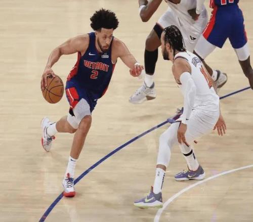 目前紐約和活塞相對聯盟大趨勢來說并不是快節奏球隊,紐約隊每48分鐘攻防回合數98.2排名全聯盟第26,活塞每48分鐘攻防100.5回合排名全聯盟第16,兩隊的球風都更強調依靠防守建立優勢,活塞更強調防守反擊,他們上賽季的場均反擊得分18.5分排名全聯盟第2,本賽季場均反擊得分18.9排名全聯盟第4,而球隊高質量的快速反擊離不開坎寧安的出色視野和精準傳球,他年輕時具備橄欖球四分衛潛力,所以在發動快速反擊方面,坎寧安要比布倫森更強.